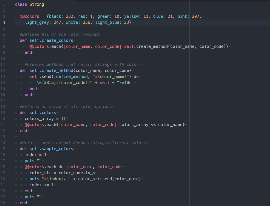 Utilized metaprogramming techniques to dynamically define color methods based on input array. Constructed Ruby gem using customized gem spec.